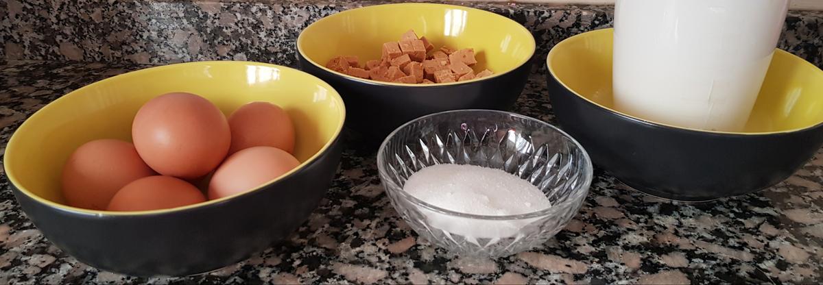 Vamos con los ingredientes de nuestro Flan de Huevo con Turrón.