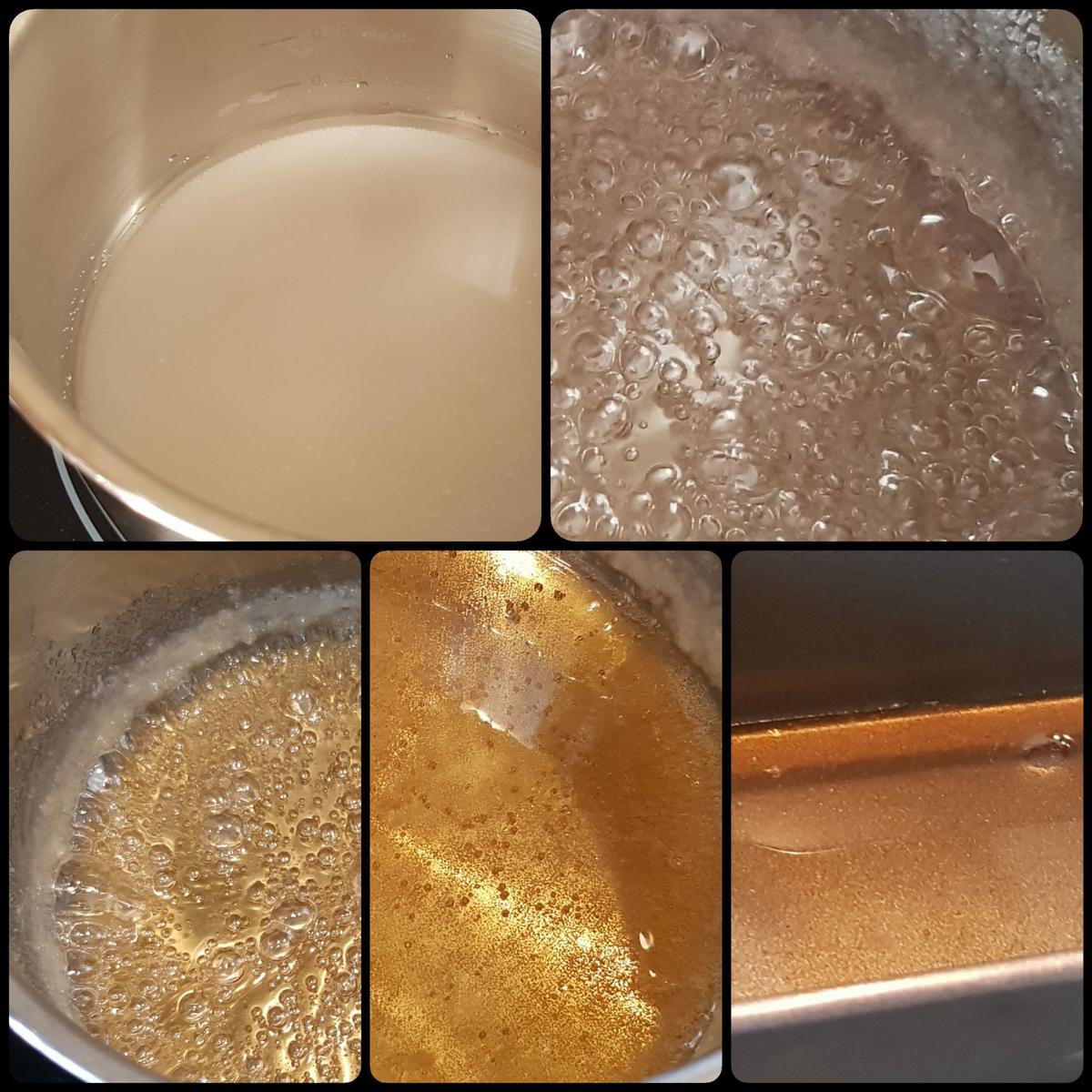 Para hacer caramelo En un cazo a fuego medio, incorporamos el azúcar y el agua y dejamos que se cocine.