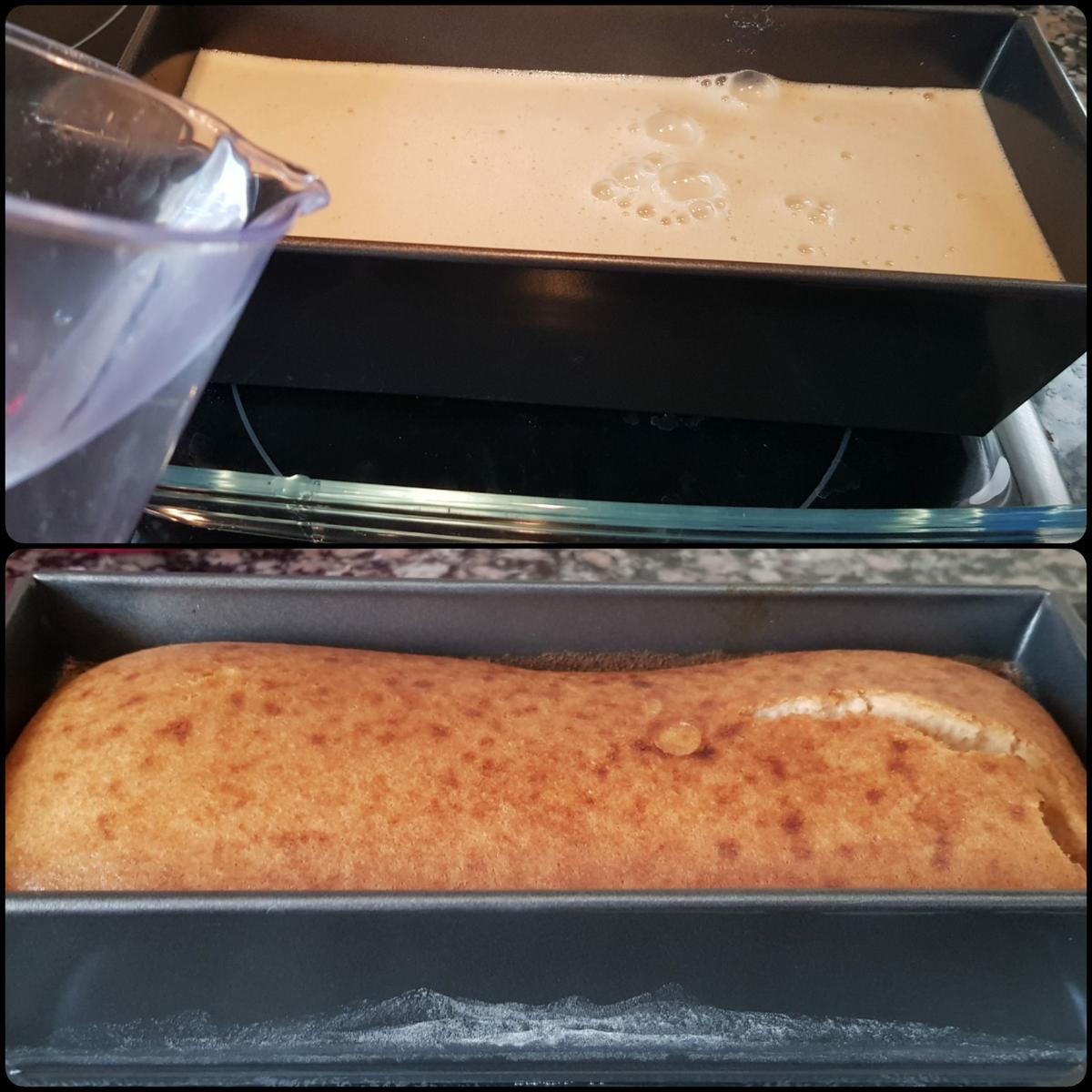 Al baño maría En un recipiente más grande que el molde del flan vertemos un poco de agua e introducimos el molde del flan. Metemos en el horno una vez precalentado a 180ºC y dejamos cocinar durante mas o menos una hora.