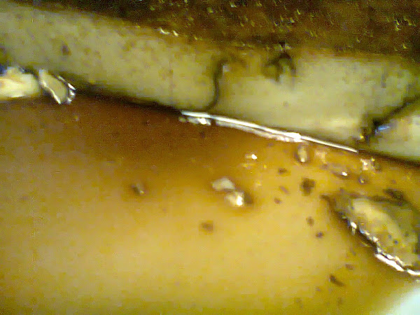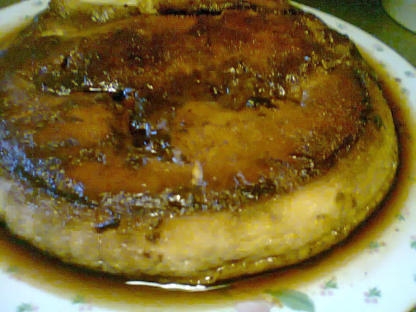 Por otro lado que si quieren aqui pueden ayudar los mas chicos, ya con el caramelo enfriandose (por ahi puede como agrietarse una vez que se enfrie y solidifique es normal) ponemos en un bol los huevos y los batimos mucho o poco segun el gusto, si quieren dejarlo con espumita y globitos el flan luego saldra asi como con esas burbujitas sino quedara liso, luego vamos añadiendo la leche en forma de mezcla o batido si lo quieren con las burbujitas, luego el azúcar y la escencia de vainilla y ya está asi de sensillo...se pasa la preparación al molde acaramelado y ese molde se coloca dentro de otro reciíente con agua y al horno....y a esperar q pase el tiempo indicado....para saber cuando está se pincha como los bizcochuelos, y si sale seco esta apunto.Se retira del horno con cuidado de no volcar el agua de la fuente, se deja enfriar y para desmoldar usamos un plato o fuente, preferentemente y por experiencia que esté frio ya el flan sino se rompe.y que donde se desmolde tenga espacio suficiente porq el caramelo se vuelve líquido y menudo enchastre sino!jejejjeje.