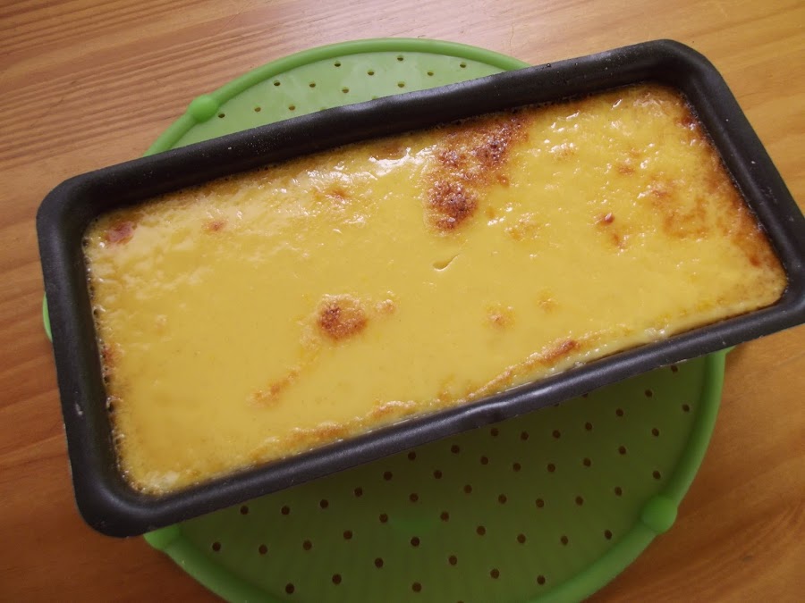 Sacar del horno y dejar enfriar completamente en el mismo molde.