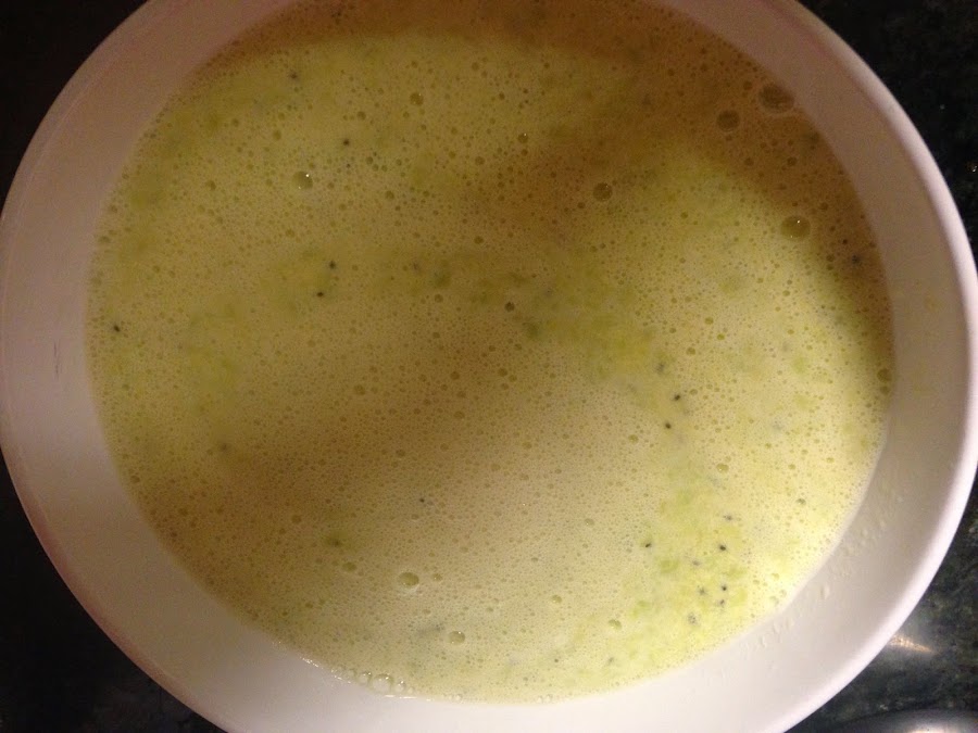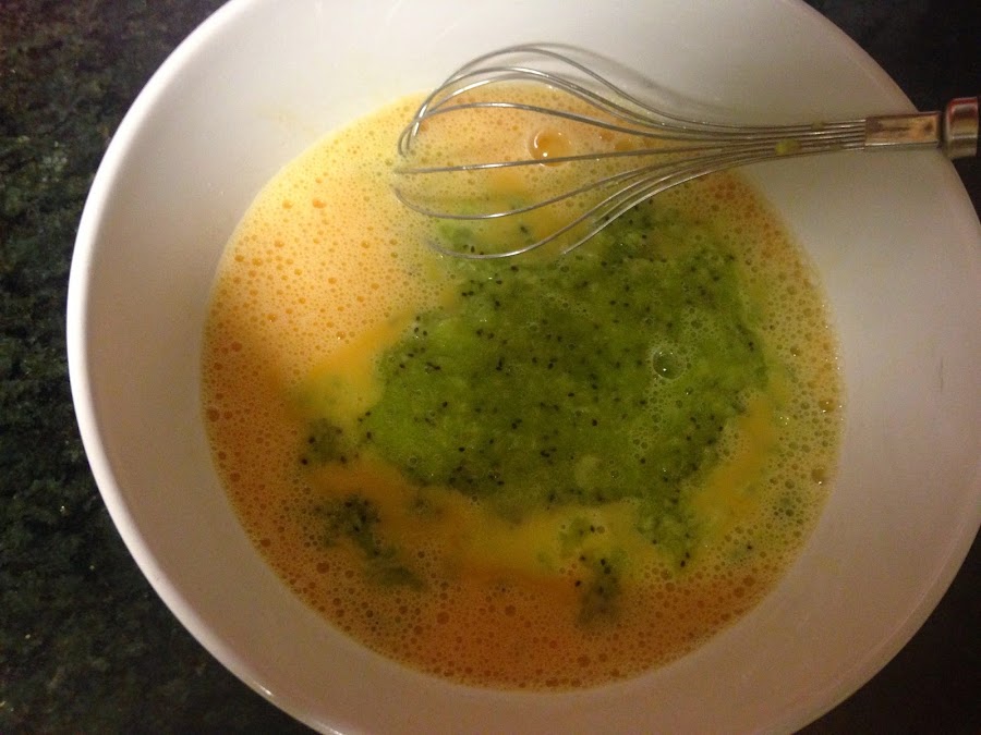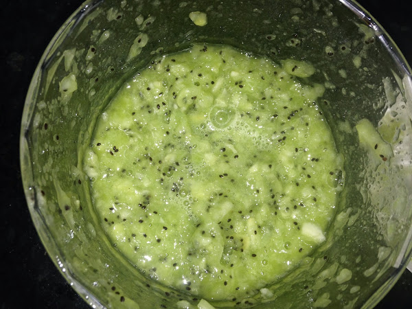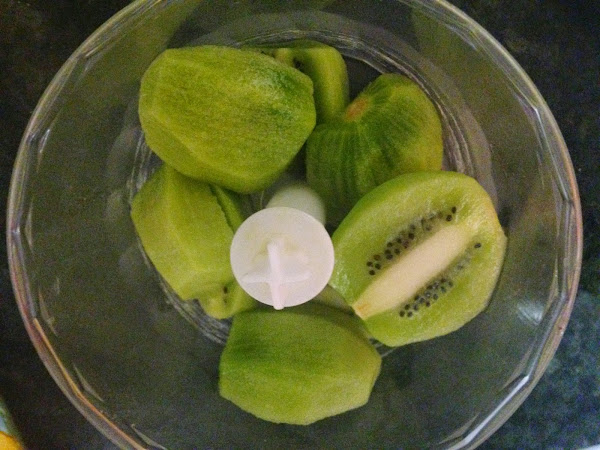 Pelaremos los 5 kiwis, los cortaremos y los trituraremos y los añadiremos a los huevos.