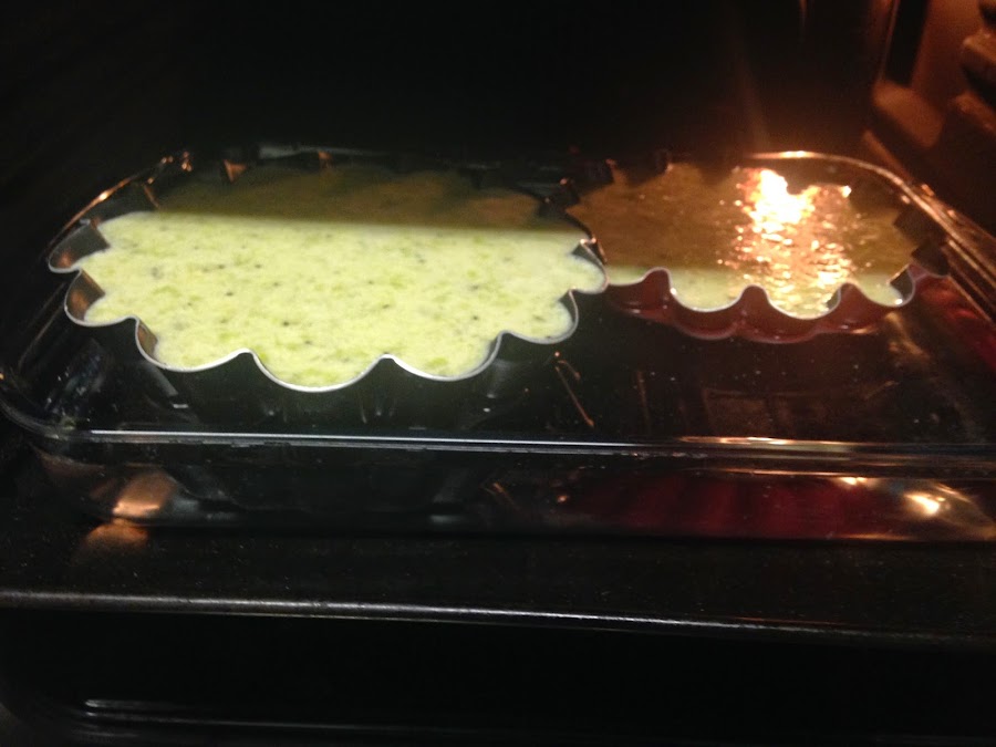 Ponemos la mezcla en los moldes y coceremos al baño maría en el horno a 180ºC durante 40 min. aprox.