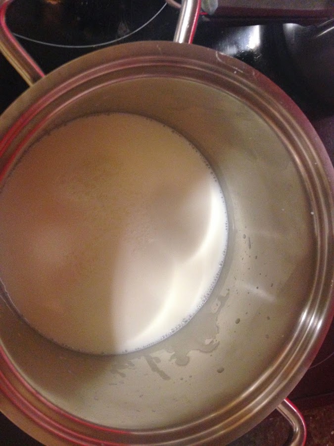 Ponemos en una cazuela la leche y el azúcar a calentar a fuego medio.
