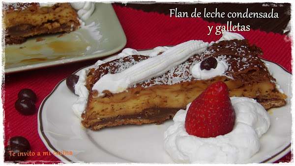 Un flan de leche condensada con galletas.