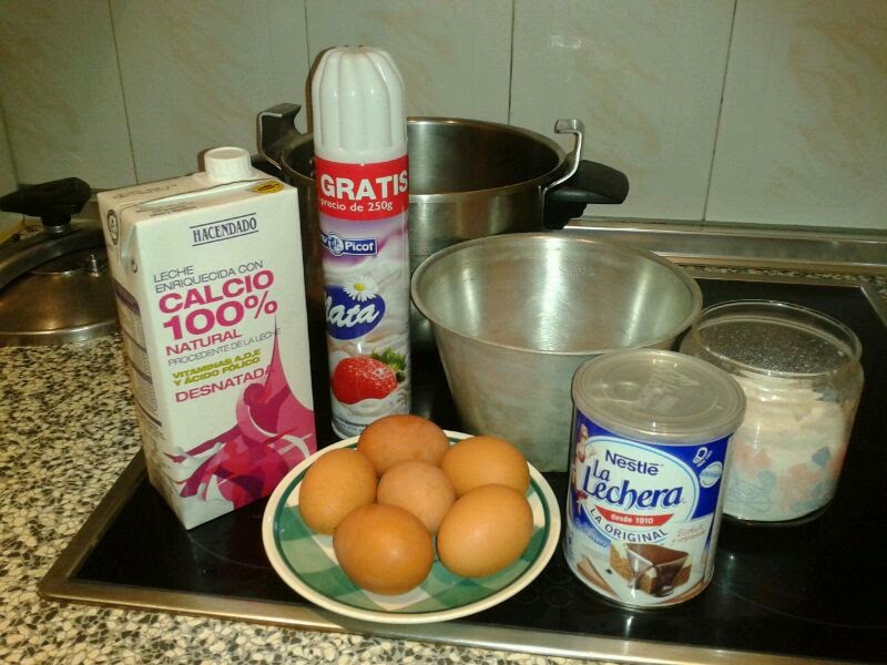 El siguiente paso es echar en la flanera la mezcla de los huevos con las dos leches y ponerlo en una olla express al baño maría durante una hora. La olla la tenéis que llenar hasta la mitad de agua. Pasado este tiempo se saca, se deja enfriar y ya está listo para degustar. Un postre que tanto en Navidades como en las comidas familiares nunca falta en mi casa y se suele acompañar con nata (crema de leche) en spray, aunque personalmente me gusta más sólo para degustar más el sabor de este delicioso dulce.