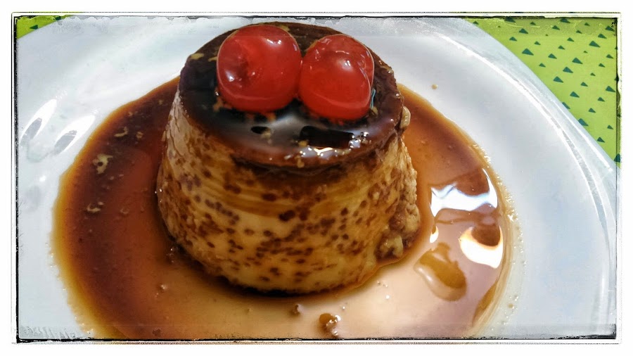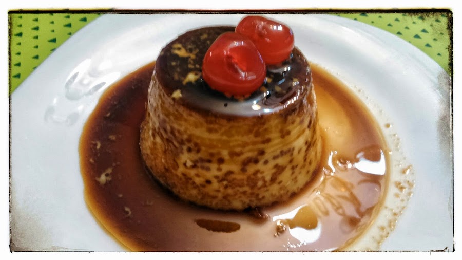 Los desmoldamos y servimos como mas nos gusten, en mi caso los he acompañado con guindas, pero con nata (crema de leche) y plátano están igual de buenos, animaros por que el sabor no tiene nada que ver con los que se venden.