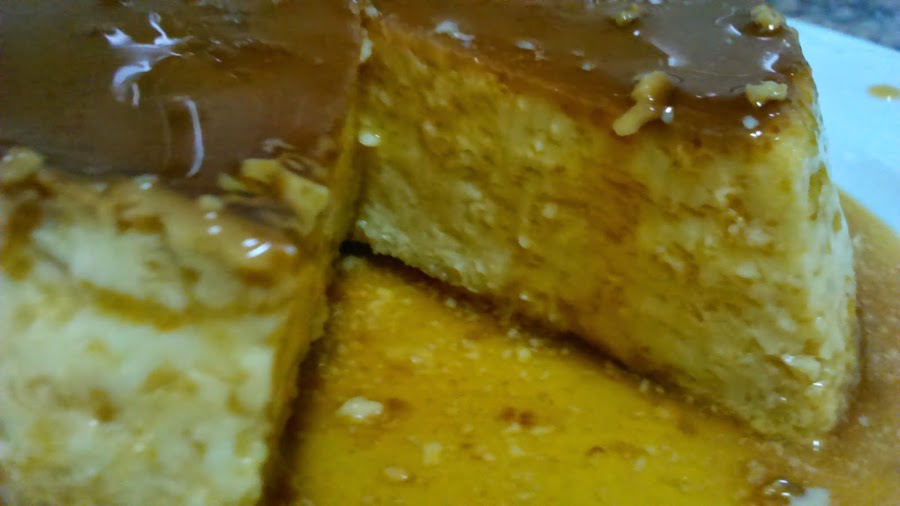 Lo dejáis enfriar y lo sacáis con cuidado del molde (sale un flan grande).