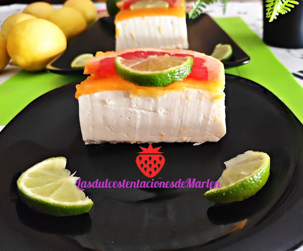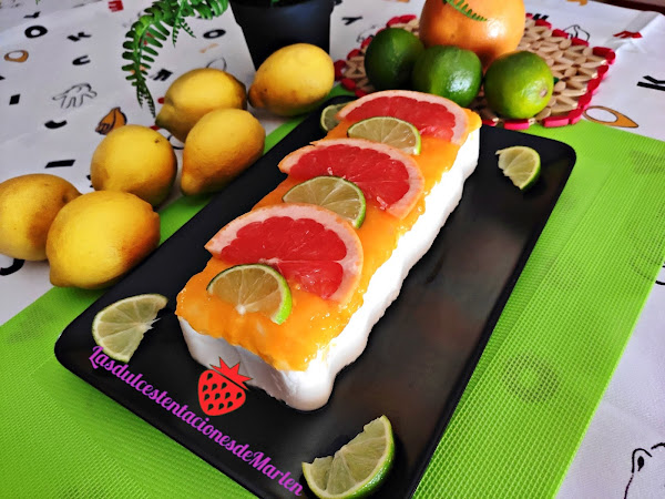 Una vez frío desmoldamos con mucho cuidado. Para decorar en mi caso he usado un poco de mermelada de naranja y unas rodajas finas de lima verde y pomelo. Pero se puede decorar al gusto.
