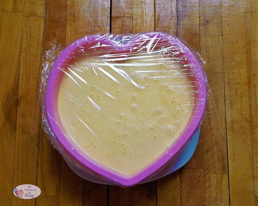 - Ponemos la mezcla en un molde de silicona y cubrimos con film de plástico.