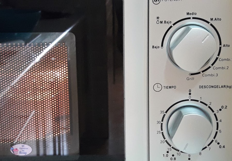 - Llevamos al microondas a potencia alta (pero no al máximo) unos 15 minutos (*).