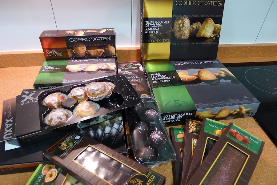 Entre las delicatessen que he recibido se encuentran las Tejas,Cigarrillos y Xaxus de Tolosa.Son productos artesanos,manteniendo la tradicion de la familia Gorrotxategi,elaborandolos a mano uno a uno y logrando: