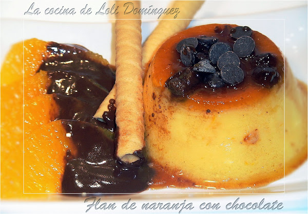 Delicioso flan, con un intenso sabor a naranja y el contraste del chocolate lo hace una pura delicia.