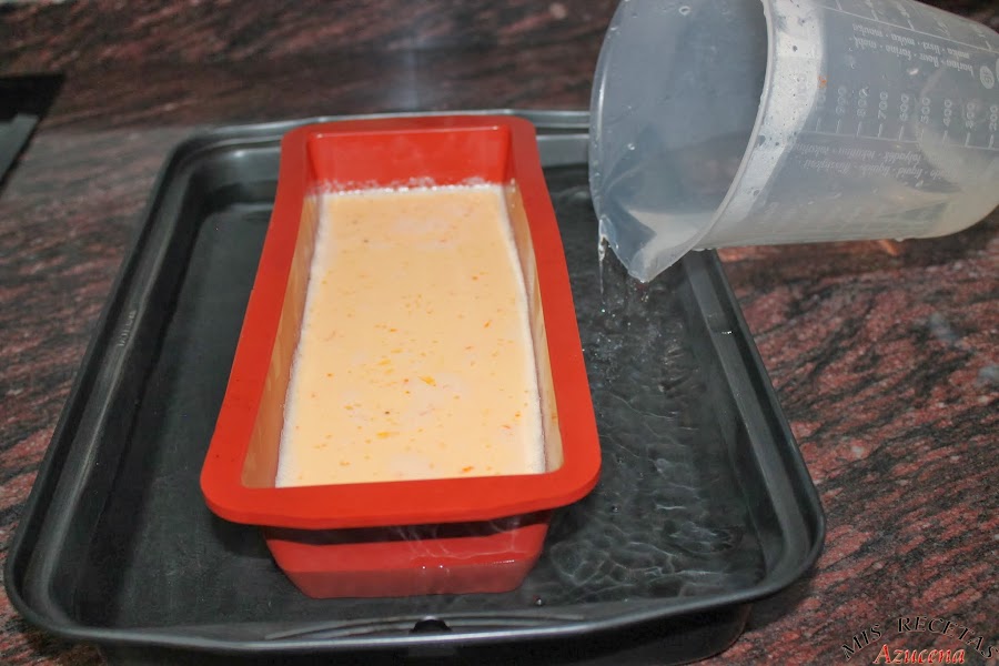 Nos prepararemos una bandeja donde coja el molde, para hacerlo al baño maría.