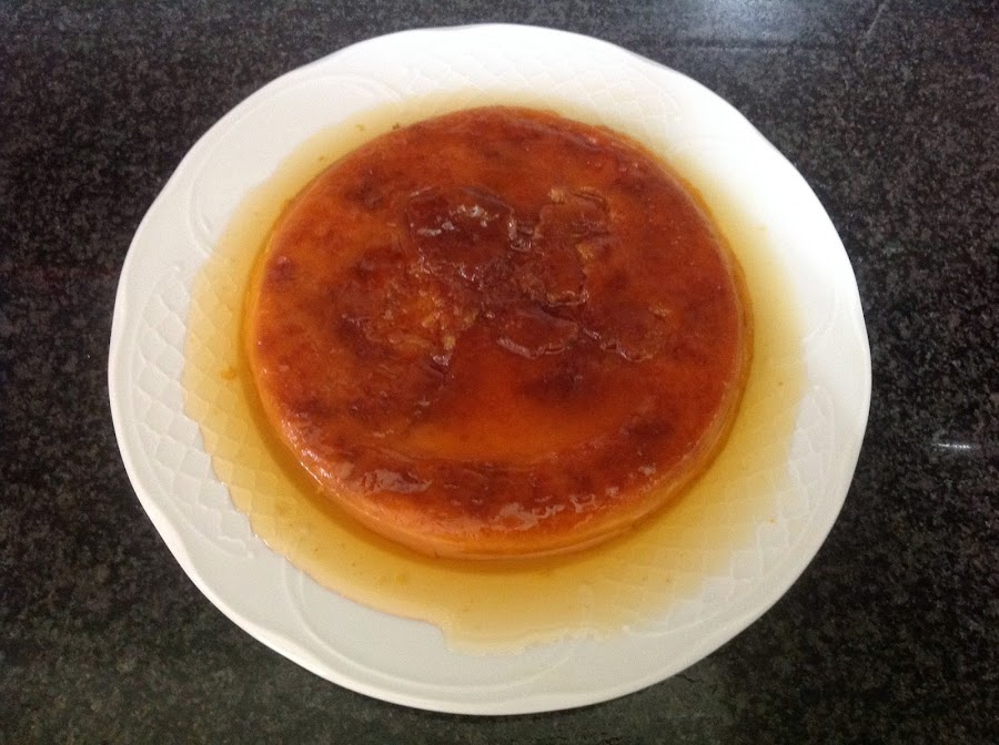 d) Ponemos la tapadera rápida, ponemos a fuego fuerte y programamos el "audiotherm" 9 minutos en la función "turbo", cuando nos avise que ha llegado a dicha función bajamos el fuego al mínimo. Cuando pasen los 9 minutos apagamos y dejamos despresurizar la olla y ya podemos sacar la softiera, sacamos el flan primero despegando las paredes con una lengua de silicona y damos la vuelta al flan con un plato.