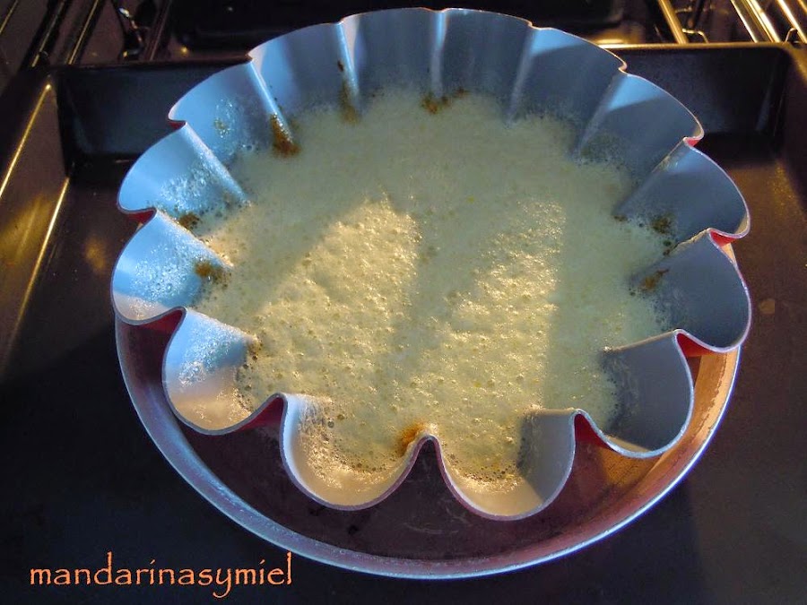 Haz caramelo con azúcar y unas gotas de agua y ponlo en el molde. (también puedes utilizar caramelo preparado).
