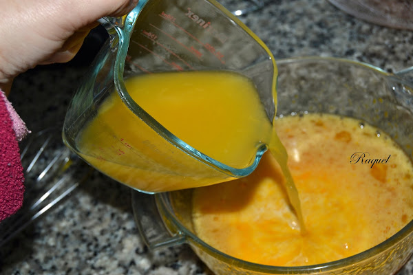 Añade la leche, el zumo de la naranja y la ralladura de la naranja