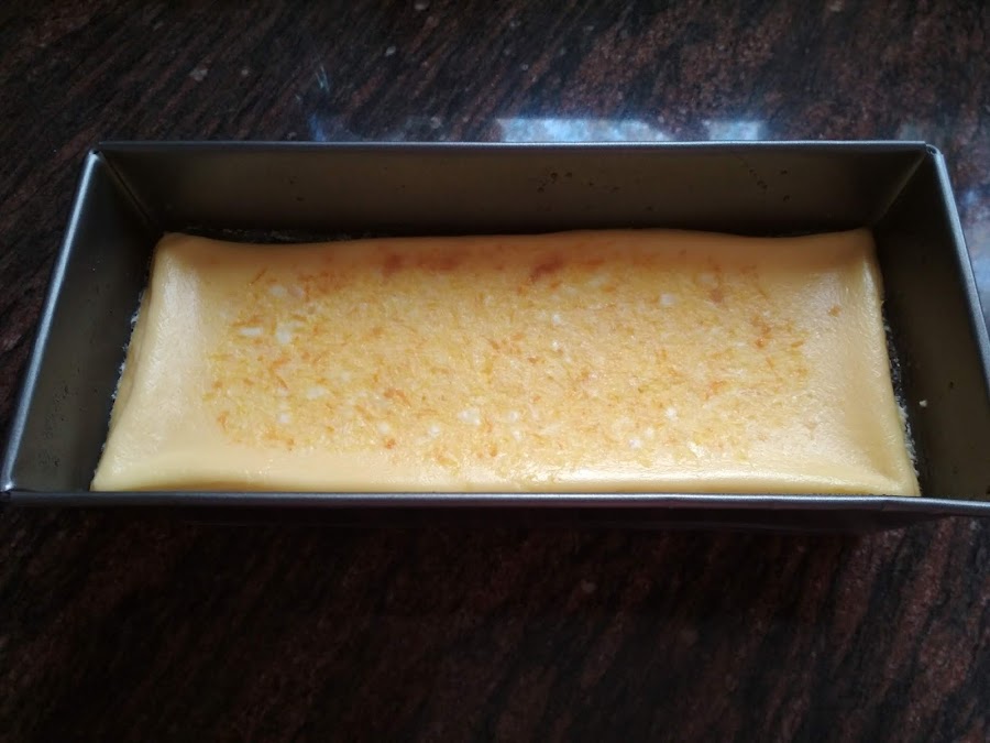 Se mete el molde en una bandeja más grande con agua, que cubra más o menos hasta la mitad, y la metemos en el horno caliente.