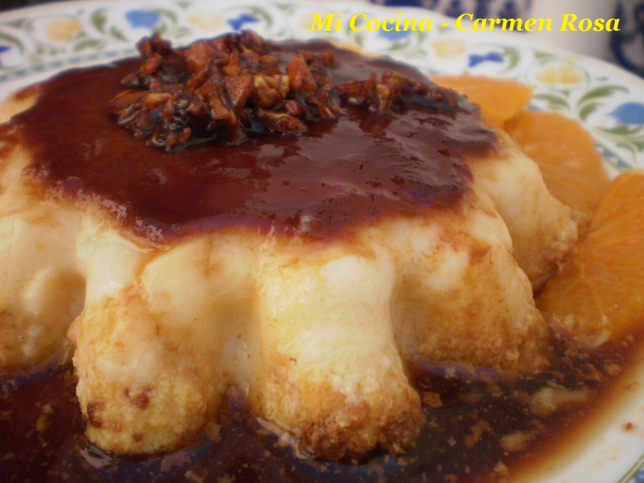 El sueño sería mi subsconciente recordándome que ése día, ella había publicado el flan de naranja y unos días antes el de fresa. Verlos y querer probarlos fue todo uno, no sólo por lo exquisito de la receta, que ella borda ya que es una magnifica cocinera, sino también es una artista a la hora de plasmar sus platos en el blog, hace unas fotos increíbles.