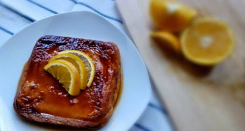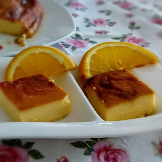 De ahí me animé a hacer este flan... que no lleva leche, sino que zumo de naranja.