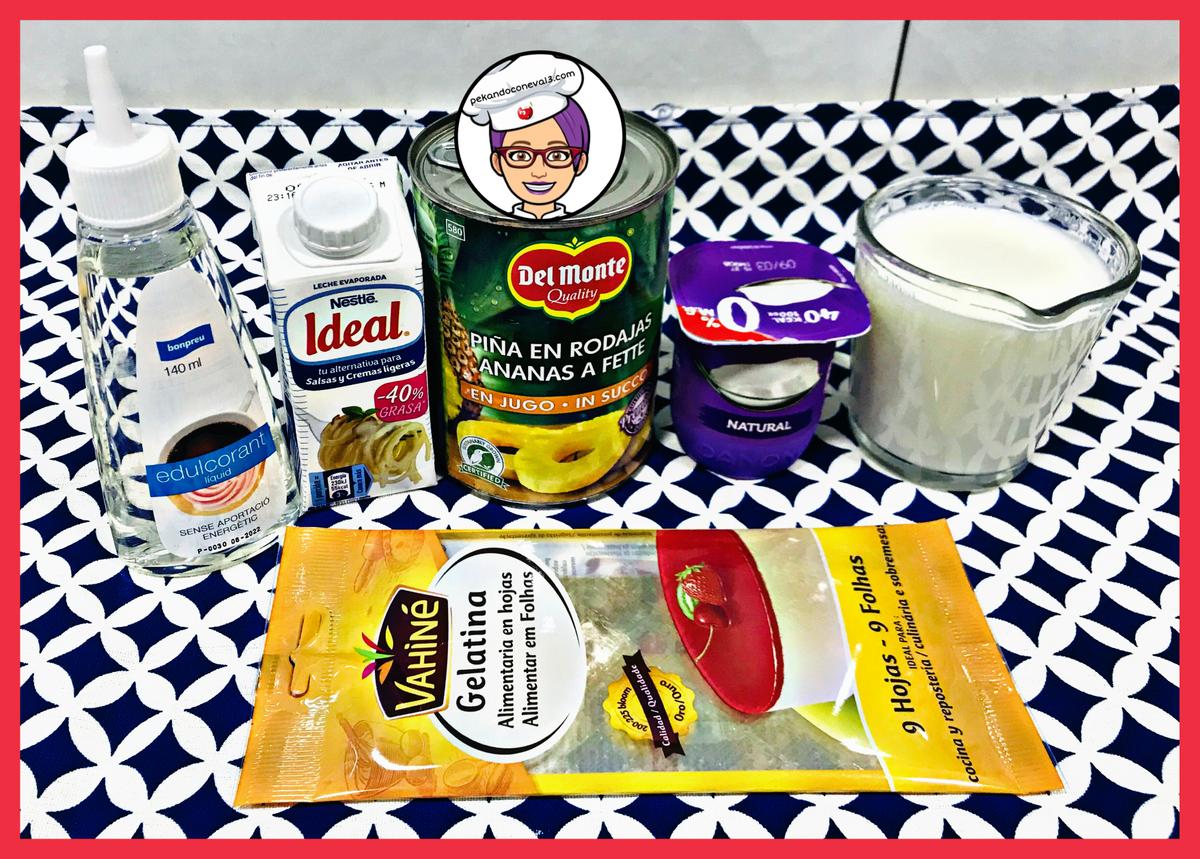 Lo primero que vamos hacer es coger un cazo ponerlo a fuego medio e ir introduciendo la leche, la nata (crema de leche) (o en mi caso leche evaporada) el yogur, el edulcorante, el jugo de piña y la piña troceada.