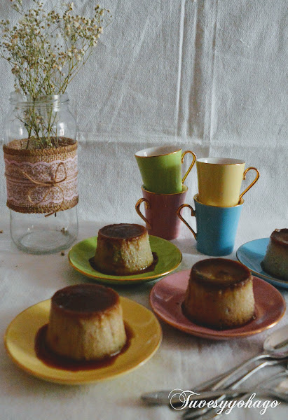 3. Cubre el fondo de las flaneras o de un molde grande con caramelo líquido.
