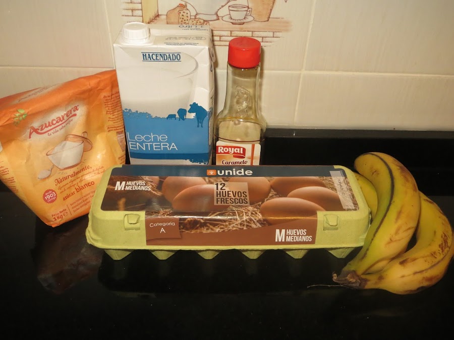 Pela los plátanos, quítales las hebras y corta en trozos pequeños, vertemos el zumo de medio limón y la leche. Trituramos todo hasta que quede bien mezclado. Cascamos los huevos y los echamos al bol, los batimos y añadimos el azúcar.