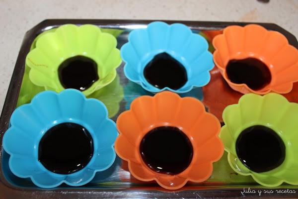 Ponemos el caramelo en los moldes que vamos a utilizar y los reservamos.