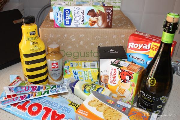 Degustabox es una caja de lanzamiento de productos nuevos de marca que incluye de 12 a 16 productos de tamaño real.