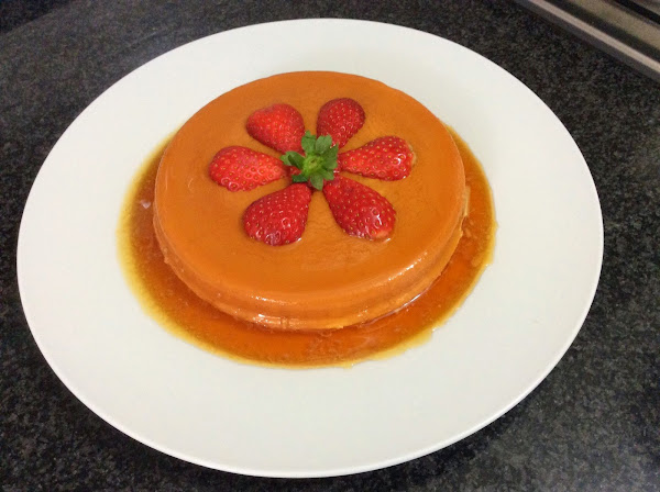f) Podemos decorar nuestro flan con unas fresas e introducir en el frigorífico antes de consumir.