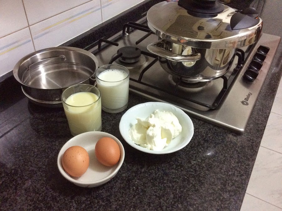 d) Poner en el interior de la olla un vaso de agua (250 ml.) e introducir la softiera; seguidamente ponemos la tapadera rápida, ponemos la temperatura de nuestro navigenio al 5 (si es Vitro o gas casi al máximo) y programamos el audiotherm 8 minutos en función "Turbo"; cuando nos avise que ha llegado a dicha función, bajamos la temperatura al mínimo, en el caso del navigenio al 1, y si es otro tipo también. Dejamos que pasen los 8 minutos y ya estará listo nuestro flan. ( si nos avisará que la temperatura sube en exceso habrá que apagar y esperar el tiempo que reste apagada. Dejaremos despresurizar lentamente y cuando baje la temperatura podremos destapar la olla.