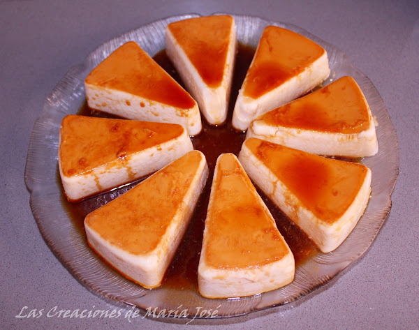Echar el caramelo en un molde, echar lo demás ingredientes en el vaso de la batidora y batir hasta que quede todo bien mezclado. Echarlo en una cazuela y cuando empiece a hervir (sin dejar de remover) apagamos el fuego y lo echamos encima del caramelo. Cuando se enfrié meterlo al frigorífico.