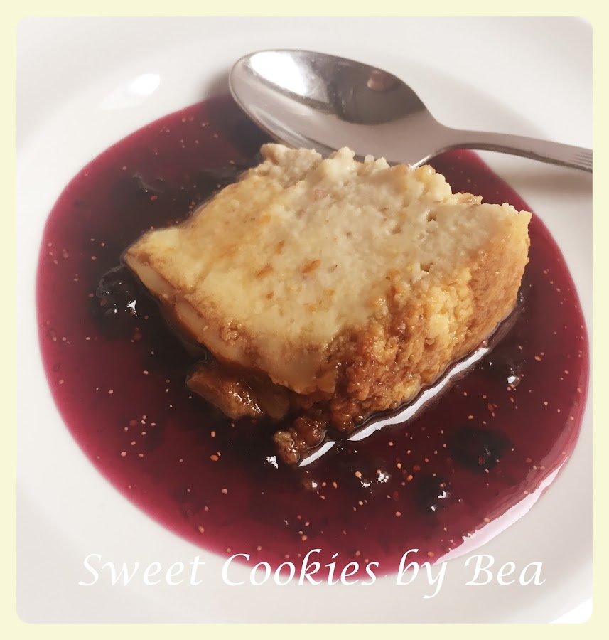 Mientras hacemos la salsa de arándanos poniendo todos los ingredientes de la salsa en una sartén a fuego medio, apretamos algunos arándanos y otros los dejamos enteros y dejamos que reduzca un poco, yo lo tuve durante 15 minutos. Lo dejamos que enfríe.