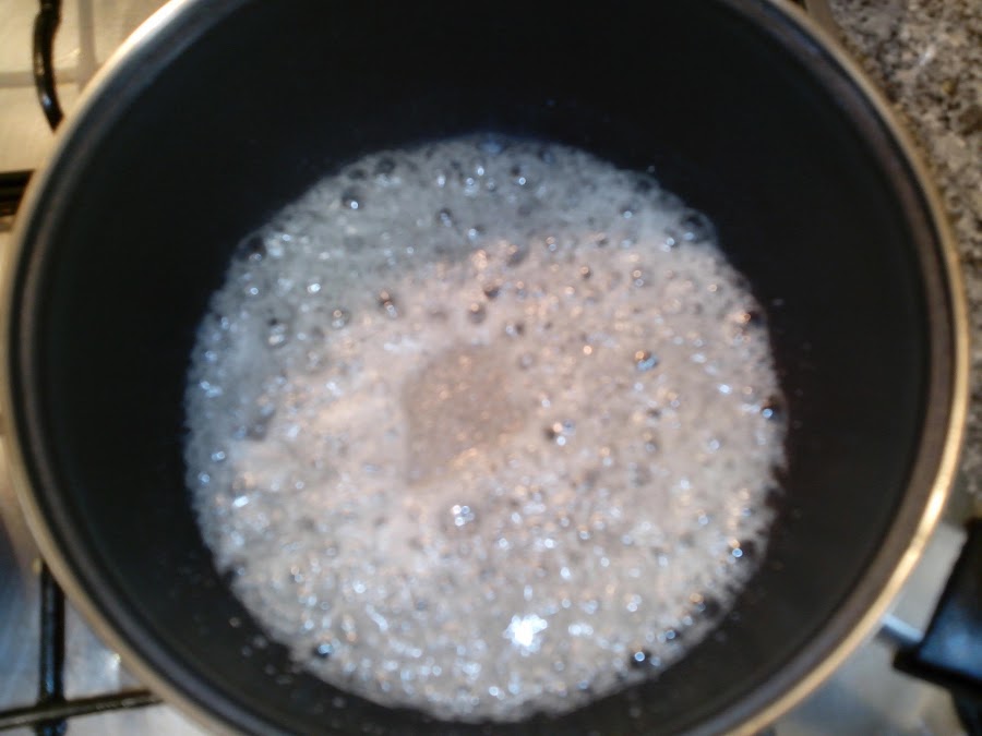 A continuación vamos a preparar el caramelo. ¡OJO! El caramelo alcanza temperaturas muy altas y puede causar quemaduras graves. Calentamos un cazo y echamos los 100g de azúcar y 6 cucharadas soperas de agua. Cuando se ponga de color marrón ya estará listo