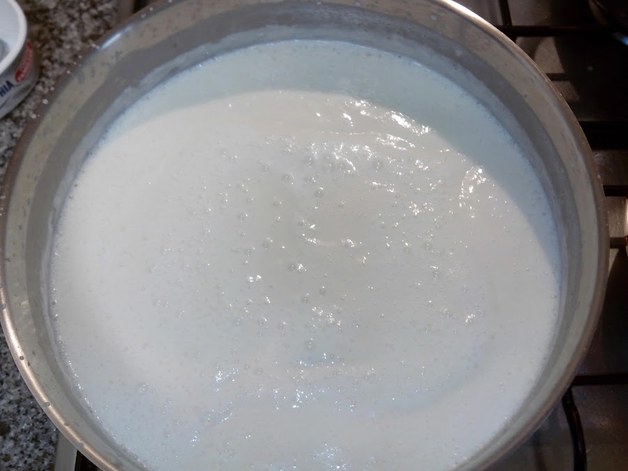 Mezclamos todos los ingredientes para la cuajada en una olla. Primero con una varilla y después con la batidora hasta que estén bien integrados. Lo ponemos al fuego y cuando empiece a hervir apagamos.