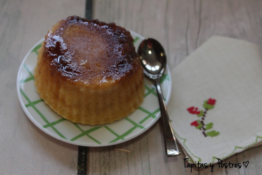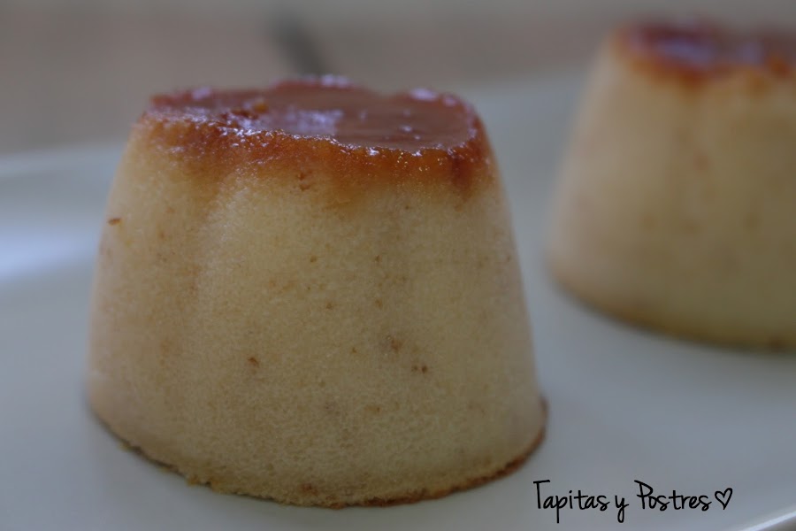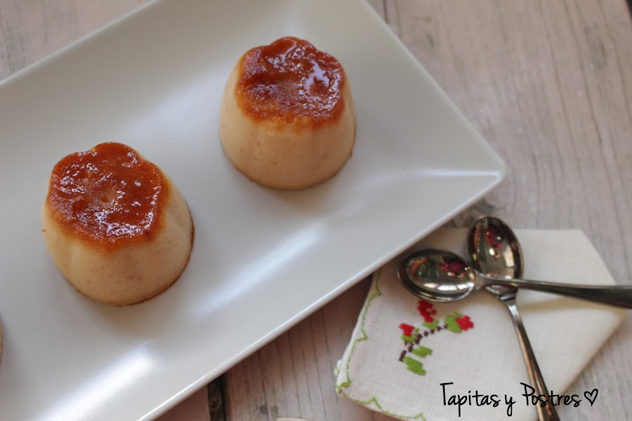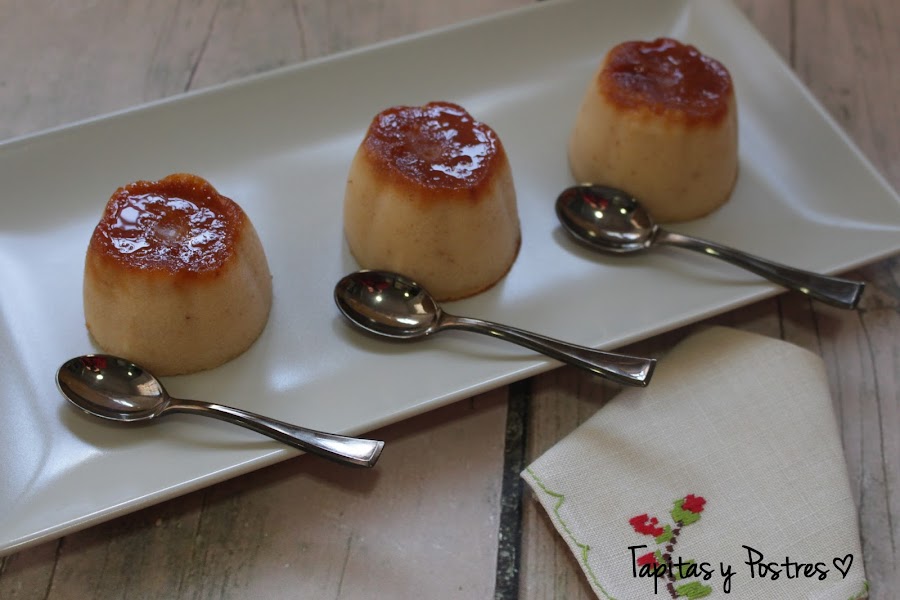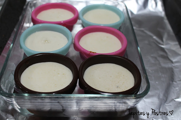 Vertemos en flaneras individuales a las que le habremos puesto un fondo de caramelo liquido y horneamos al baño María a 180º unos 18-20 minutos.