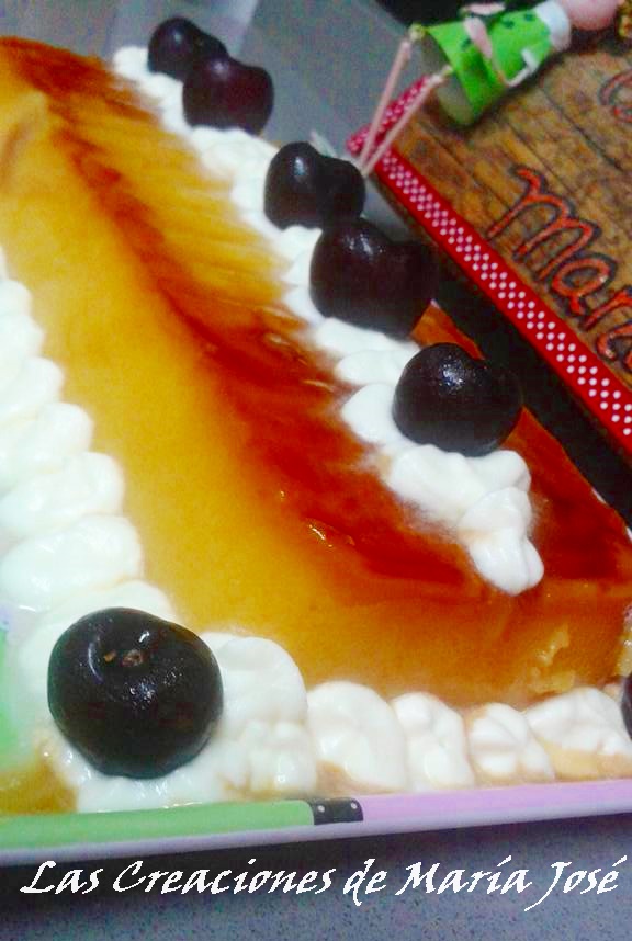 Hacemos el té, como lo hagáis normalmente. Ponemos a calentar la leche, mientras mezclamos los sobres de flan con el té y el azúcar y echamos el caramelo en el molde. Cuando la leche empiece a hervir echamos la mezcla del té y no dejamos de remover hasta que este espeso, si no removemos se nos pegara en el fondo de la cazuela. Cuando espese lo echamos en el molde y cuando este frió lo metemos al frigorífico, es mejor hacerlo de un día para otro así nos aseguramos de que quede perfecto. Lo podéis decorar al gusto, yo monte nata (crema de leche) la meti en una manga pastelera y la adorne con la nata (crema de leche) y unas cerezas en honor al Té verde de cereza.