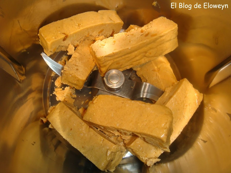 Sí, ya sé que estamos en verano y mucho turrón de jijona no venden... pero es que este año, mi madre tuvo que venir a pasar las navidades en nuestra casa y se trajo tooodos los turrones que había comprado, y entre ellos, había una tableta de turrón de jijona. Y a nosotros no nos gusta ese turrón. No es por el sabor, es que nos parece que es demasiado aceitoso y demasiado empalagoso. ¡Y ahí se quedó!... En el armario... hasta que me acordé de un curso de Thermomix que hice hace un montón de años, donde nos enseñaron a hacer este postre. ¡Pues nada!, a buscar la dichosa receta por toda la casa. Después de buscarla por todos lados, al final la encontré escondidita en un armario. La próxima vez, como ya la tengo en el blog, la tendré más a mano... jajaja
