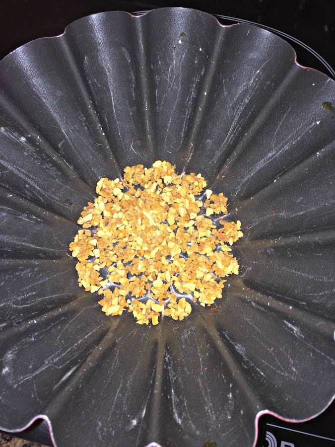 Lo bueno de los preparados de flan es que ya traen el caramelo incluido, y nos ahorramos este paso. Vamos a caramelizar el molde con unos de los sobres, en este caso yo puse almendra crocanti en el fondo del molde, junto con el caramelo, para decorar. Lo podéis poner al desmoldar, es indiferente, o simplemente no poner nada y servirlo acompañado de nata montada (crema de leche), por ejemplo, es al gusto de cada uno.