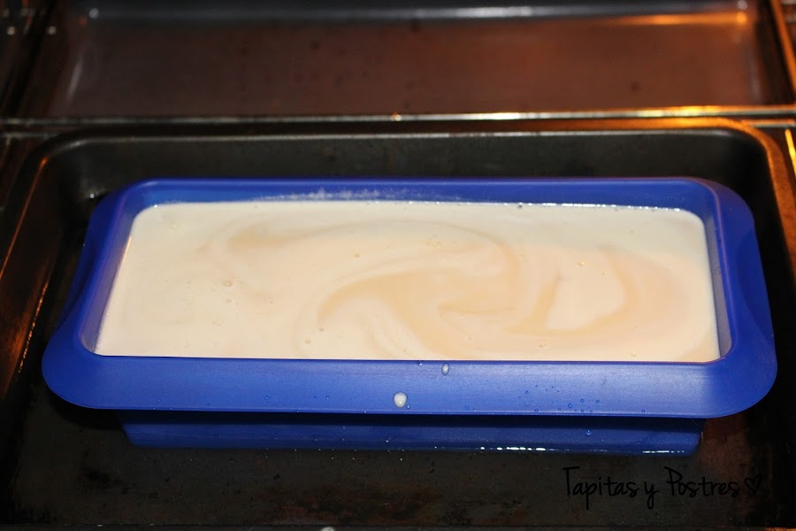 Ponemos la crema en un molde, lo tapamos y horneamos al baño María una hora.