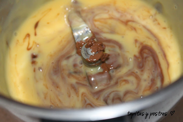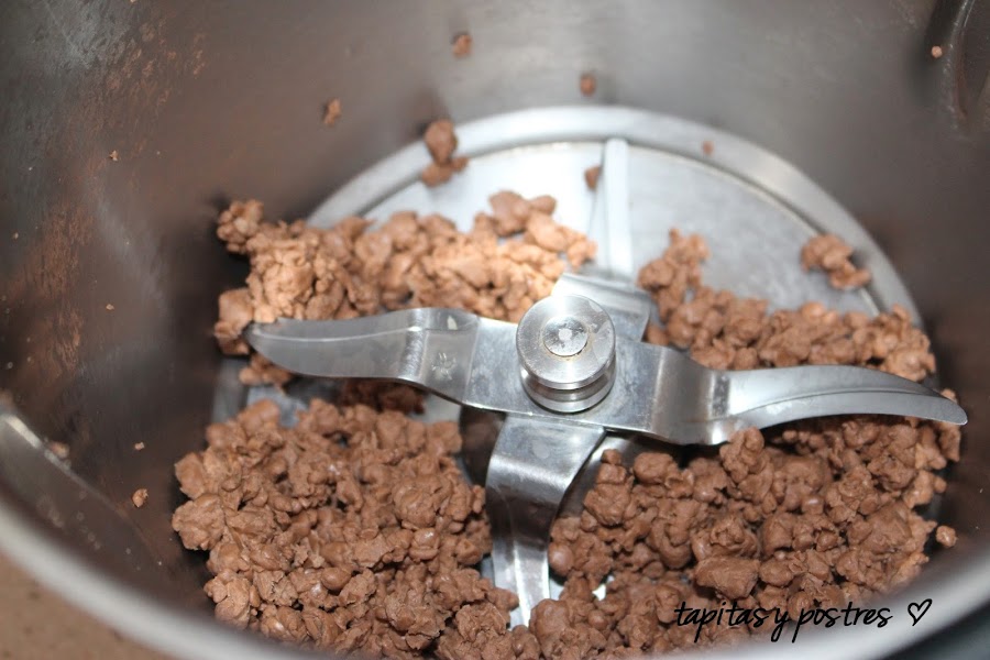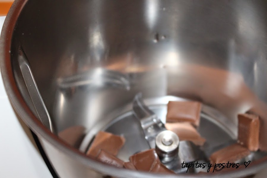 Primero trituramos el chocolate, 5 segundos a a velocidad 5. Lo reservamos.