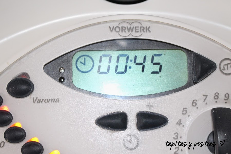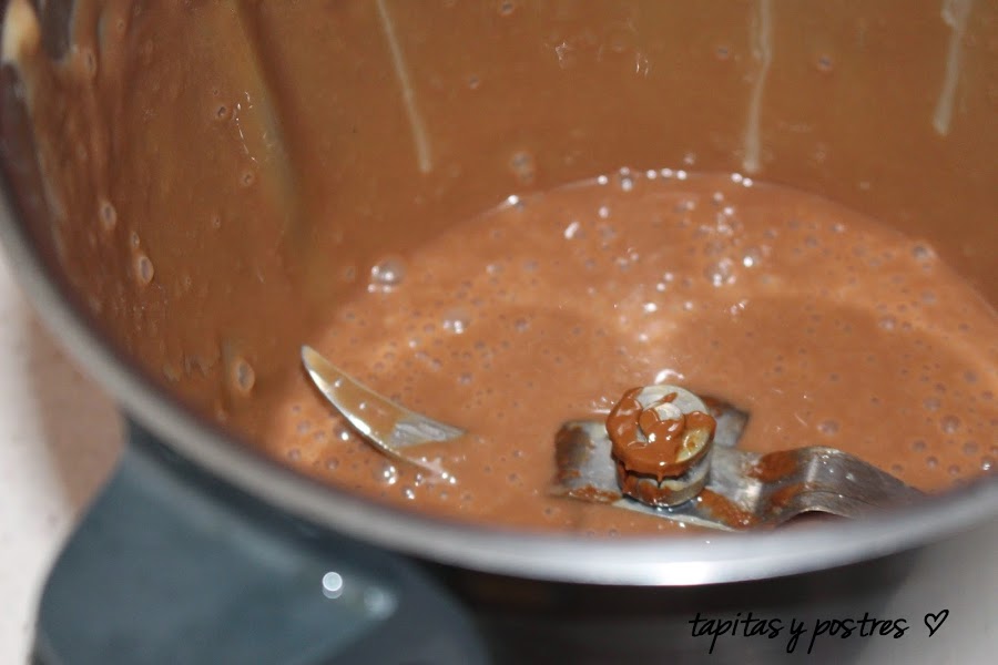 Cuando falten 45 segundos para acabar, paramos la thermomix y vertemos la mezcla en los moldes.