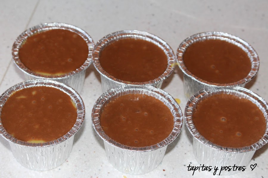 Y echamos la mezcla en los moldes. Sin gastarla toda, eh?