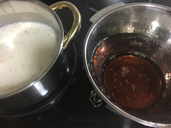 Se pone en una cazuela la leche con la vainilla y el azúcar, para que se disuelva el azúcar y para que la vainilla se infusione. No hace falta que hierva.