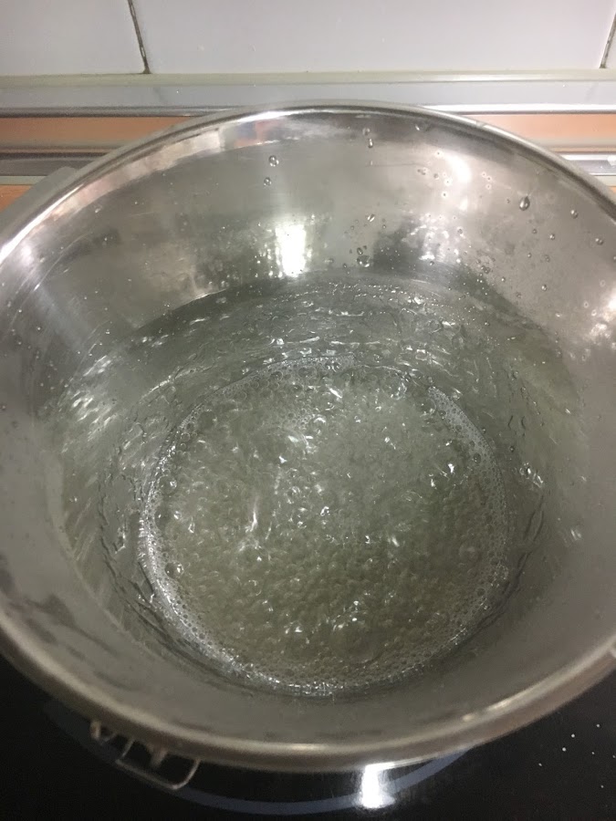 Se hace primero el caramelo, poniendo una flanera grande o una cazuela con el azúcar, el agua y el limón a fuego medio. Se empezará a disolver el azúcar en el agua e irá caramelizando. Conviene que vayamos moviendo el recipiente para que no se apelmace.