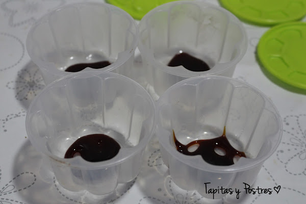 Ponemos caramelo liquido en los moldes, estos tienen una tapa que los cierra muy bien. Pero solo son válidos para el Varoma , no me valen para el horno. Cuidado con eso, aseguraros que los moldes son aptos.
