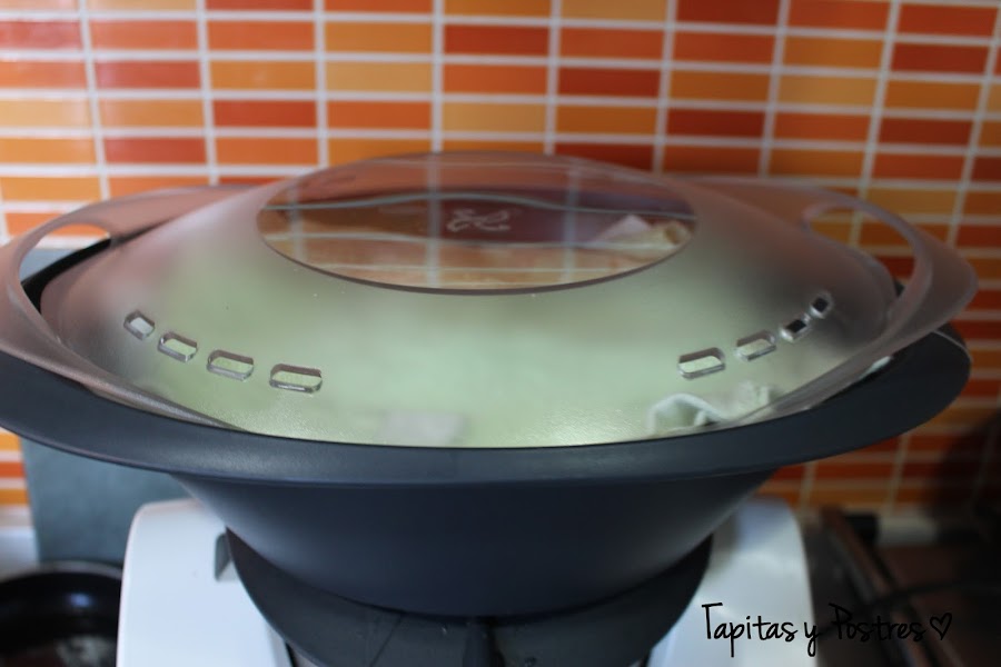 Al acabar, levantamos la tapa del Varoma con cuidado que el vapor que sale quema mucho.