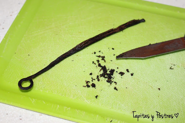 Le sacamos las semillas a la vaina de vainilla.