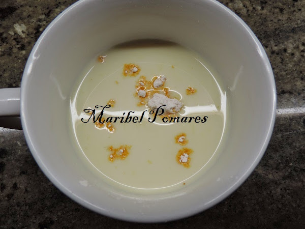 Removemos bien hasta que se disuelva el flan y el azúcar.