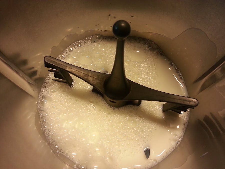 Elaboración:Poner 400 grs. de la leche en el vaso del thermomix, con la mariposa puesta en las cuchillas. Programar 10 minutos, 90º, velocidad 2.